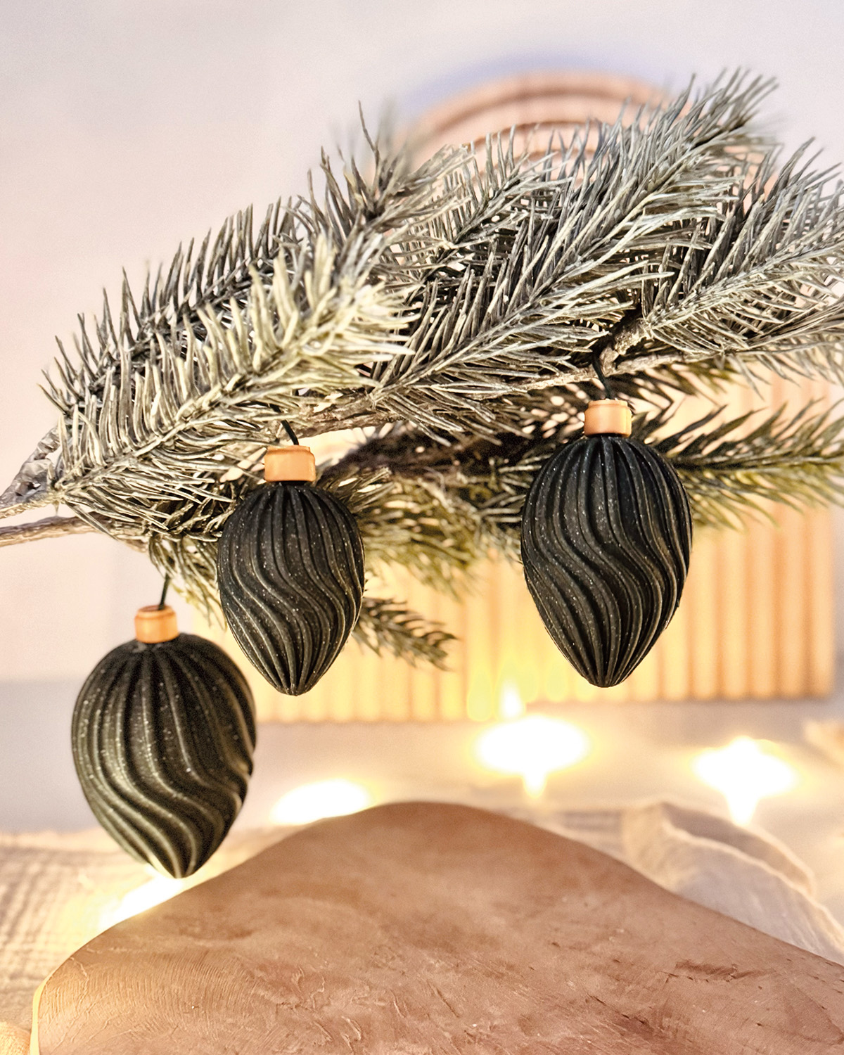 Dieses bezaubernden Sets bieten dir je drei unterschiedlich große Baumanhänger als Christbaumschmuck in Zapfenform, Tannenbäumchen oder klassischen Kugeln, ideal für die Weihnachtszeit. Die 3D-Druckdatei enthält alle Größenvarianten und ist so ausgelegt, dass du die Verschlüsse in einer anderen Farbe drucken kannst. Die Aufhängehaken können entweder ebenfalls ausgedruckt werden oder du bringst gekaufte Haken oder Bändchen an. Diese eleganten Formen bringen frischen Wind in deine Weihnachtsdekoration und verbindet modernes Design mit festlicher Stimmung.