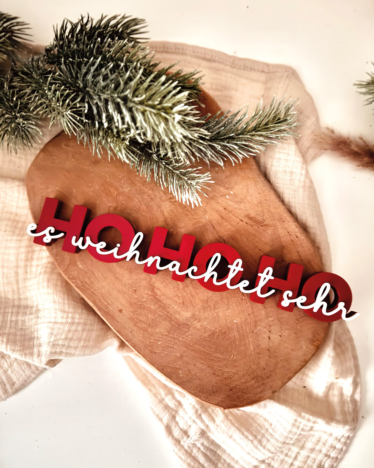 Mit diesem Schriftzug bringst du die Magie von Weihnachten direkt in dein Zuhause – schlicht, festlich und mit einem Augenzwinkern.