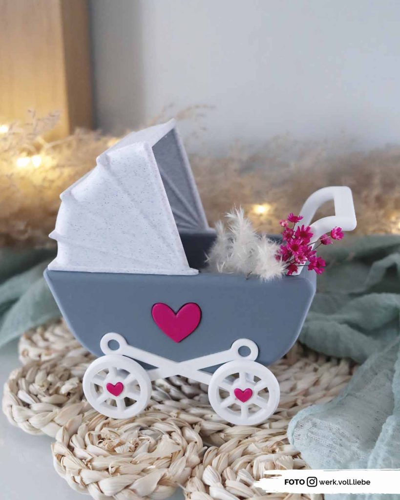 Diese 3D-Druckdatei zeigt einen liebevoll gestalteten Kinderwagen, der sich perfekt als Geschenkidee zur Geburt eignet. Ob als dekoratives Element im Babyzimmer oder als besondere Verpackung für kleine Aufmerksamkeiten – dieser Kinderwagen macht jedes Babygeschenk noch persönlicher.