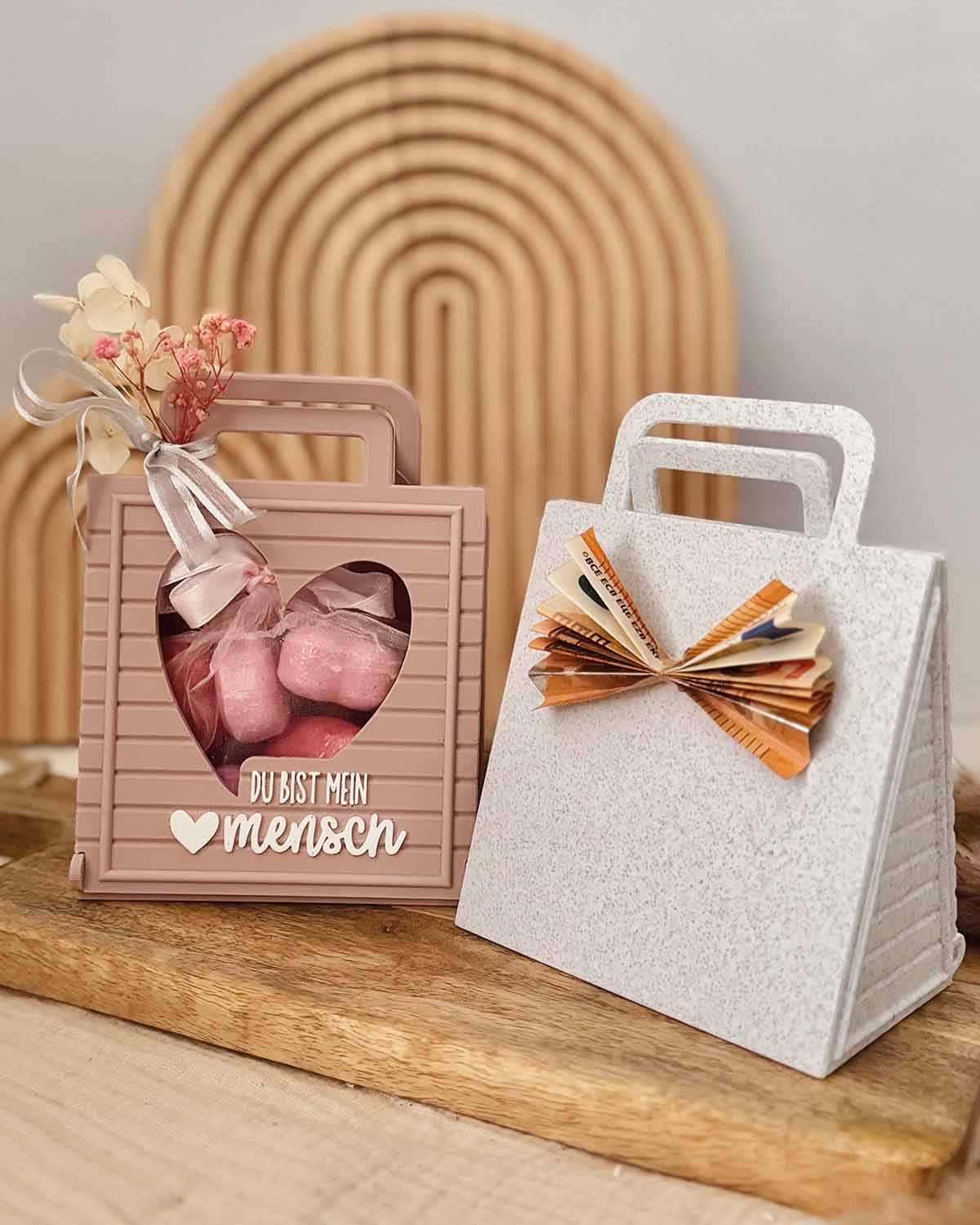 Diese Laserdateien sind das perfekte Geschenk für alle, die schon alles haben. Die Geschenktüten passend zum Geburtstag, Valentinstag, Jahrestag oder einfach so. Du kannst sie mit Kleinigkeiten füllen und sie gleichzeitig als perfektes Geldgeschenk nutzen.