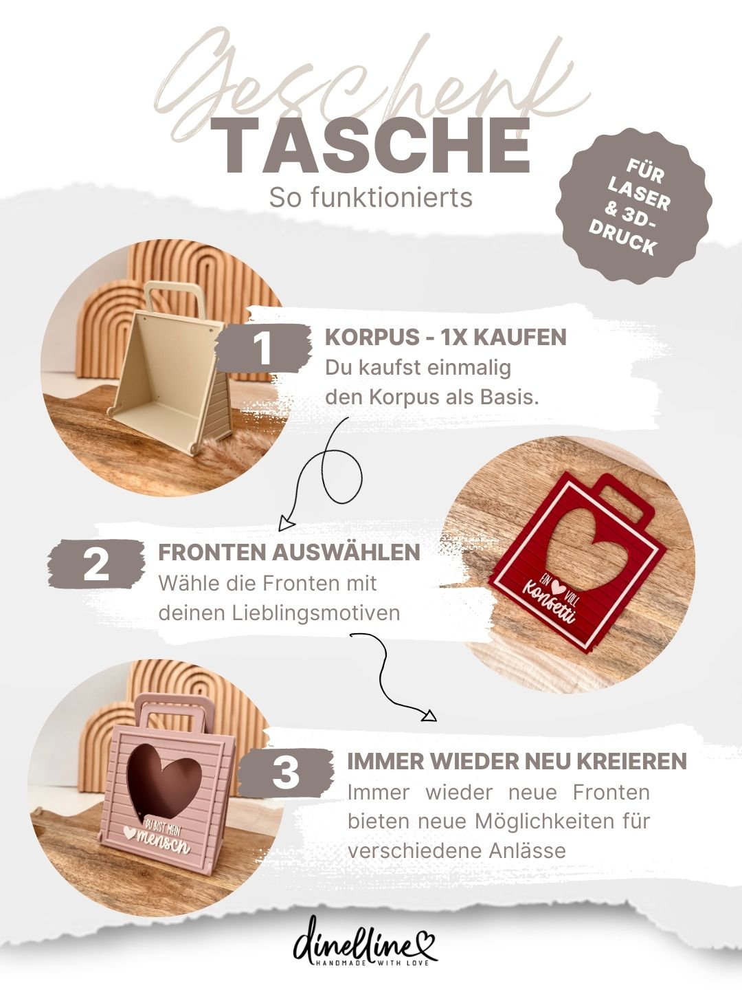 Den Korpus für die Geschenktüten kaufst du einmalig separat (Er ist in keinem Bundle enthalten). Dieser besteht aus 3 Varianten: