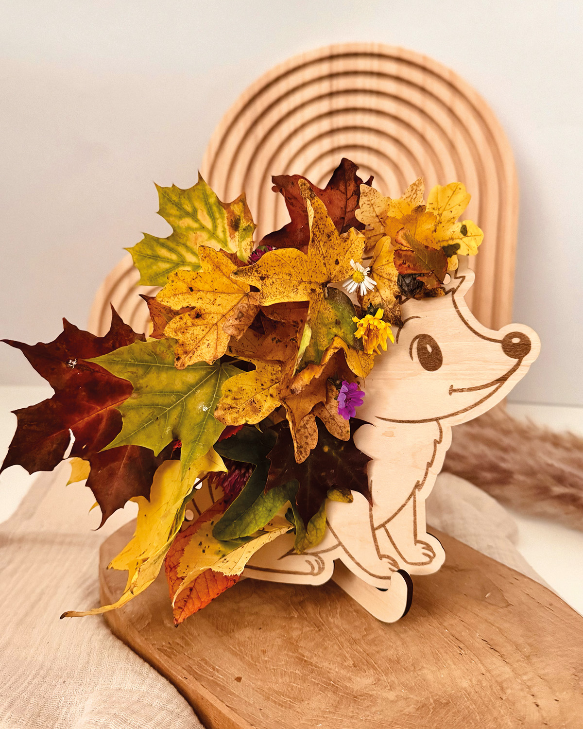 Süße Deko für kleine Entdecker! Mit dieser niedlichen Laserdatei erhältst du einen Igel, der nicht nur Deko, sondern auch eine wundervolle Beschäftigungsidee für Groß und Klein ist. Das Bild ist mit kleinen Löchern versehen, damit sie mit Blumen und Blättern verziert werden können. So entsteht daraus ein süßer Blätterigel, den man immer wieder neu verwandeln kann. Egal, ob er in der Natur beim Spaziergang oder zu Hause mit Trockenblumen zum Einsatz kommt – die Datei enthält außerdem einen kleinen Ständer, mit dem man den Igel auch als Deko aufstellen kann.