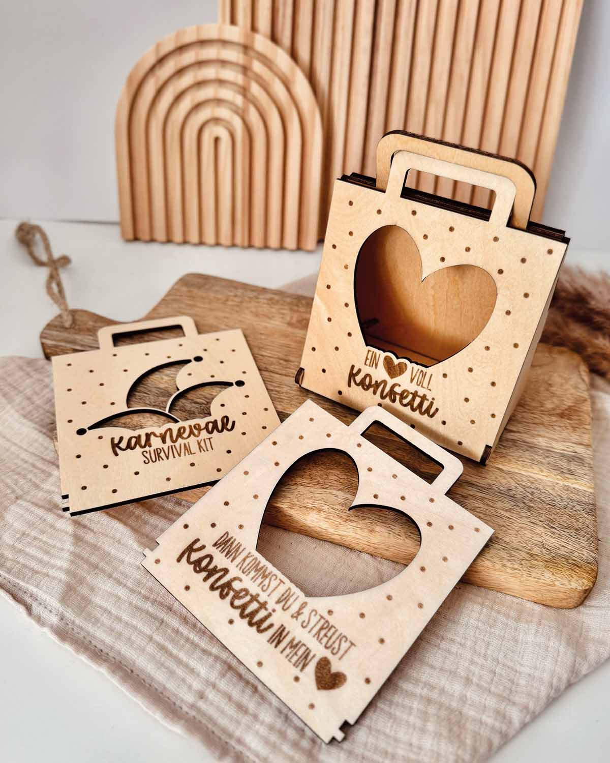 Diese Laserdateien sind das perfekte Geschenk für alle, die schon alles haben. Die Geschenktüten passend zu Karneval, zum Geburtstag, Valentinstag, Jahrestag oder einfach so. Du kannst sie mit Kleinigkeiten füllen und sie gleichzeitig als perfektes Geldgeschenk nutzen.