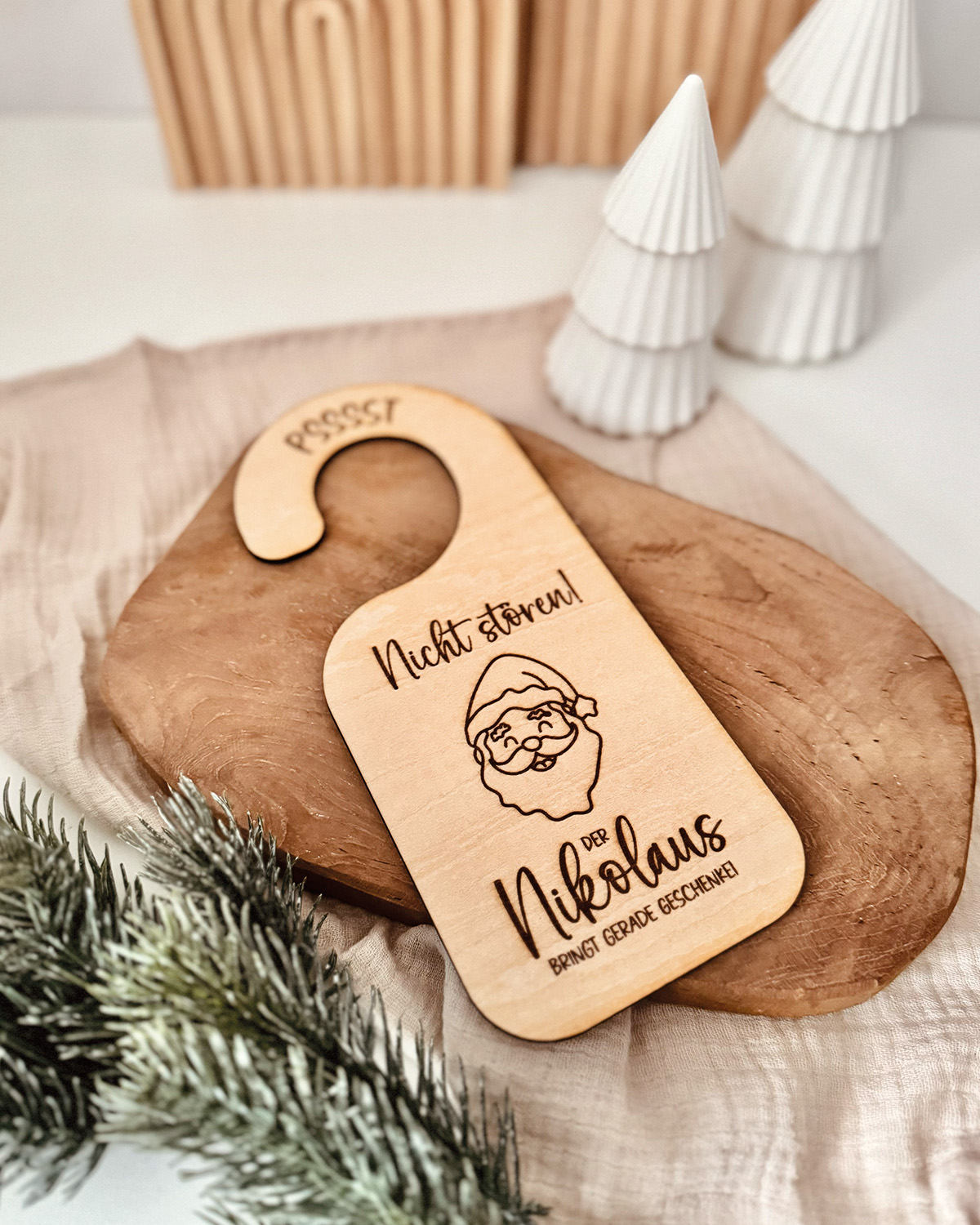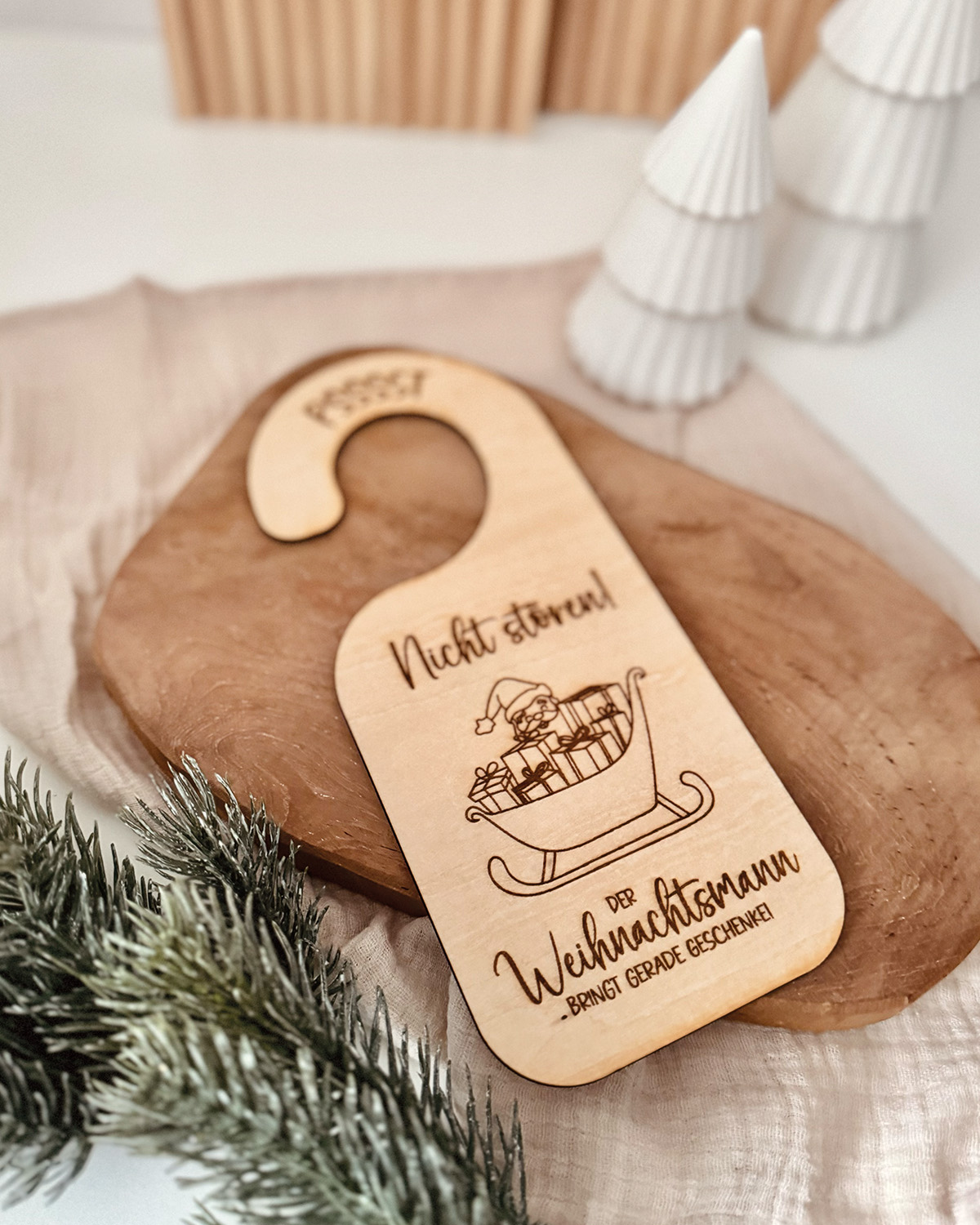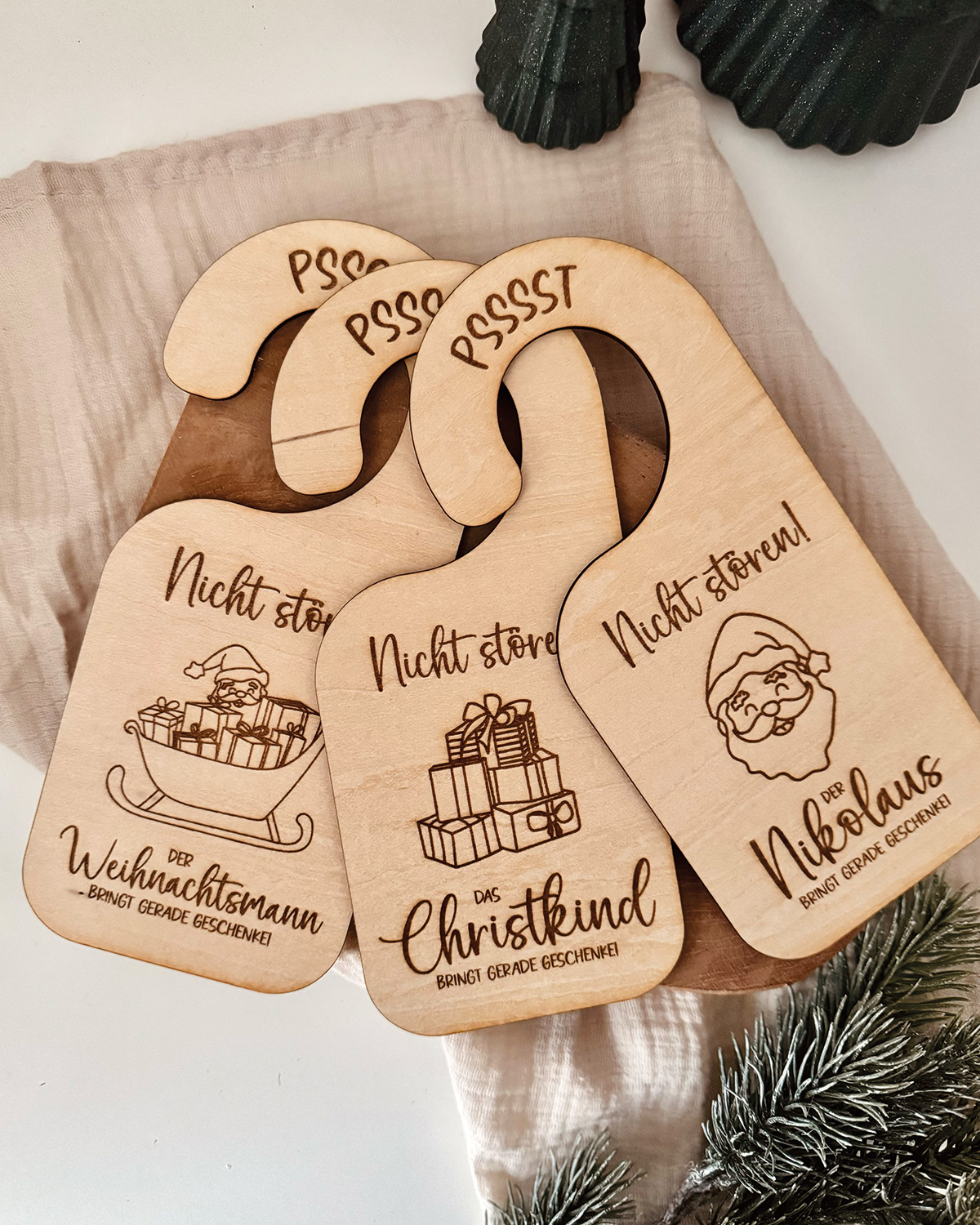 Diese liebevoll gestalteten Türanhänger zum Lasern machen die Weihnachtszeit noch ein bisschen magischer. Perfekt für Familien mit Kindern – denn manchmal soll es einfach ganz ruhig bleiben, wenn „wichtige Gäste“ unterwegs sind.